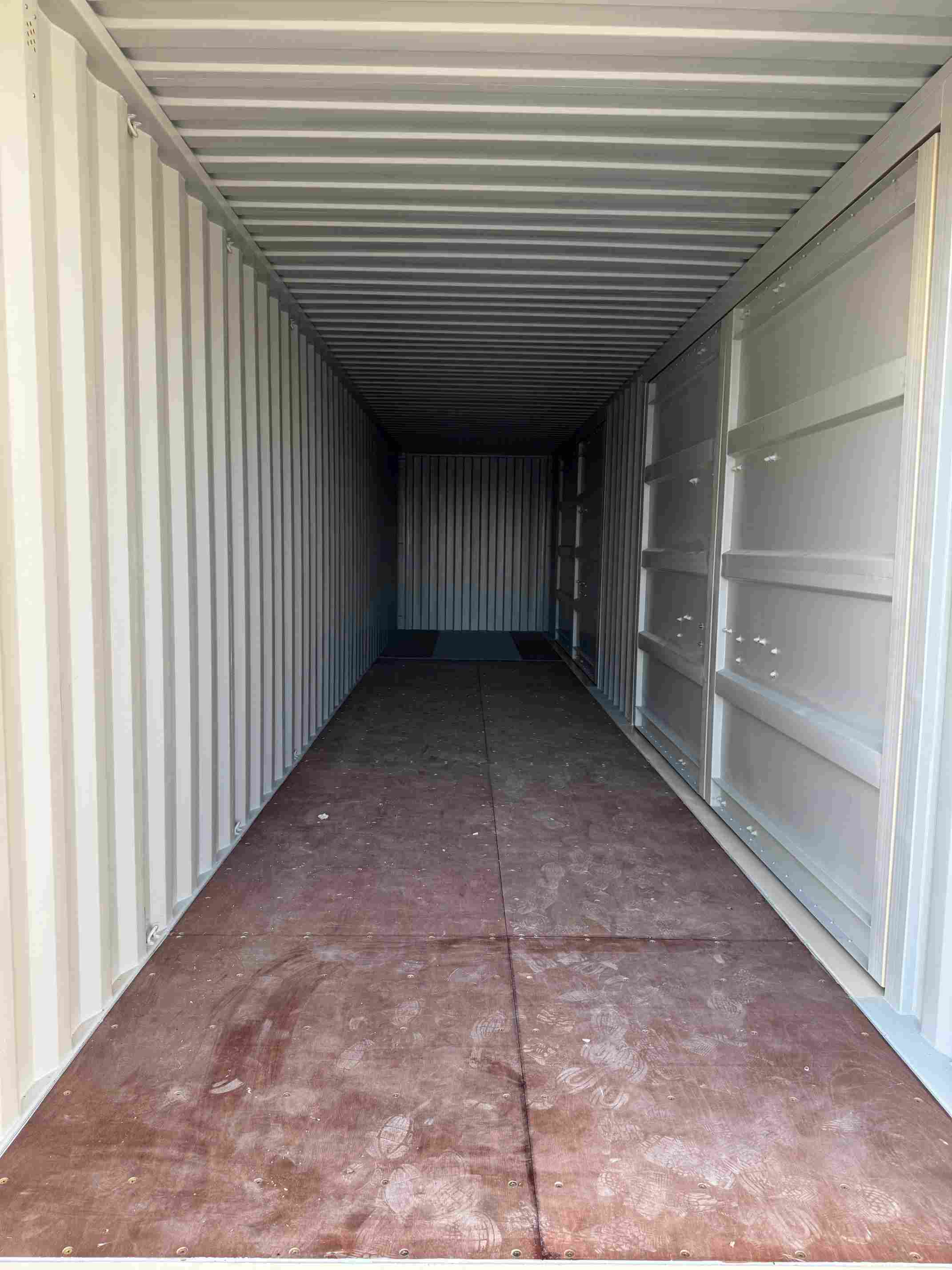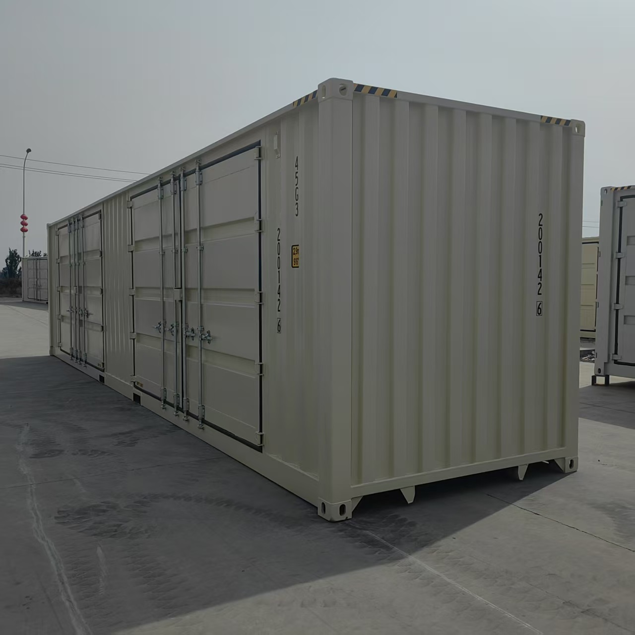 O recipiente de cubo alto do lado aberto de 40 pés é um contêiner marítimo especialmente projetado. Ele adere ao comprimento padrão de 40 pés (aproximadamente 12,192 metros) e possui uma especificação de altura extra-alta (aproximadamente 2,896 metros), juntamente com uma estrutura de porta de abertura lateral. Suas principais características estão na combinação de um espaço de carregamento excepcionalmente grande com funções convenientes de carregamento e descarregamento, tornando-o adequado para o transporte de carga grande ou extra-larga.