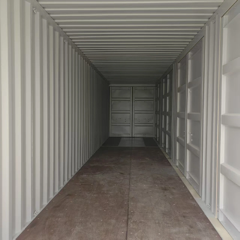 Um recipiente lateral aberto de 40HC é um grande navio de transporte logístico que combina dimensões específicas, recursos estruturais e de design. Possui um comprimento de aproximadamente 12,19 metros). O termo "extra-alto" (alto cubo) indica que sua altura excede a de um contêiner padrão (normalmente cerca de 30 centímetros mais altos que um recipiente padrão, com uma altura padrão de contêiner de cerca de 2,59 metros e uma altura extra-alta de cerca de 2,89 metros), fornecendo maior espaço vertical interno.